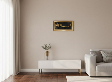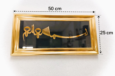 Besmele-i Şerif Pleksi Cam Tablo| 50×25 Gold Çerçeveli