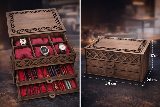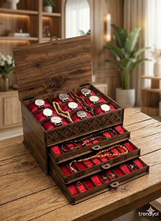 Tesbih Saat Koleksiyon Kutu 3 Kat Çekmeceli